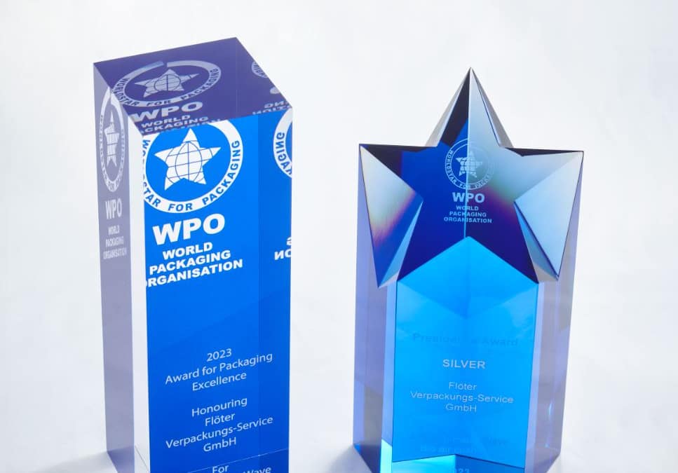 Als Gewinner des Deutschen Verpackungspreises qualifizierte Flöter sich für die Bewerbung zum World Star Packaging Award. Die WPO zeichnete insgesamt 228 Preisträger in verschiedenen Kategorien aus. Bereits im Januar wurde bekannt, dass das Team der Flöter Verpackungs-Service GmbH die ultimative Verpackungsauszeichnung gewonnen hat – einen WorldStar Award in der Kategorie „e-Commerce“ für unsere Luftpolster aus Papier PaperWave Bio. Bei der WorldStar Awards Award Ceremony & Gala Dinner am 6. Mai 2023 in Düsseldorf auf der INTERPACK wurden die Gewinner geehrt und weitere Kategorien prämiert. Mit großem Stolz konnte Flöter den Silver Presidents Award entgegen nehmen, eine ganz besondere zusätzliche Auszeichnung.
